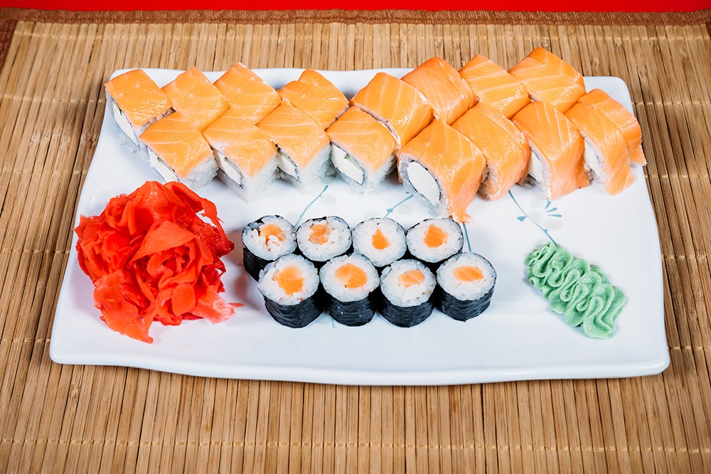 Ролл «Нежность», ролл «Филадельфия», ролл «Сяке маки»,