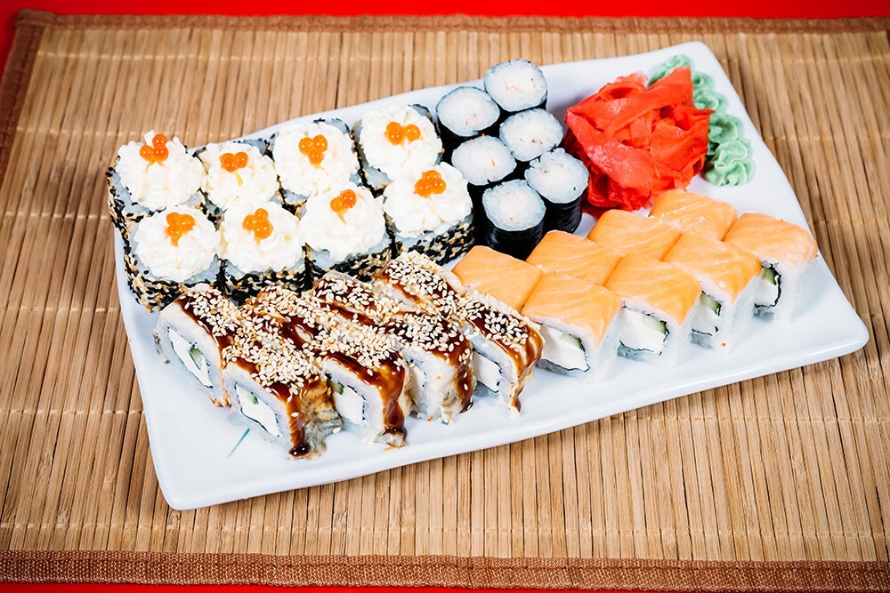 Ролл «Филадельфия», ролл «Унаги Филадельфия», ролл «Сказка Востока», ролл «Эби маки»