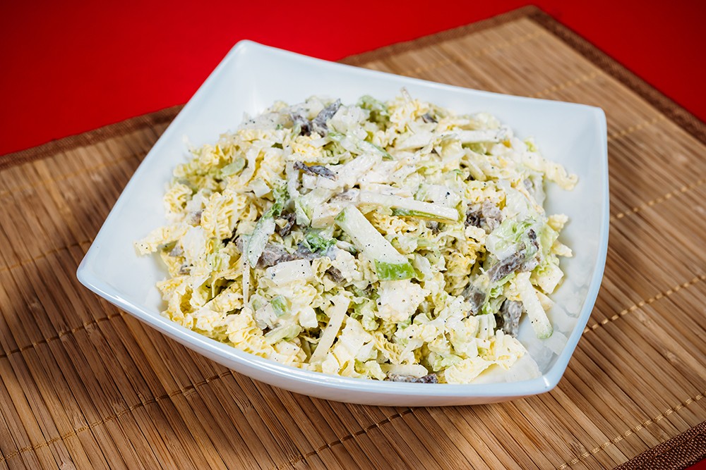 Отварной язык, капуста пекинская, сыр, яблоко, майонез