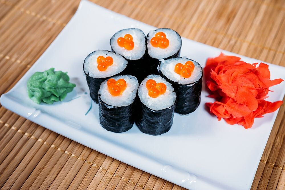 Сыр, икра красная, рис, нори