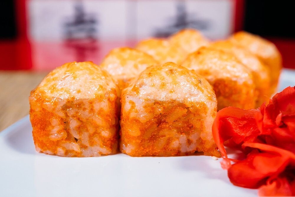 Лосось, угорь, сыр, рис, масаго оранжевая, креветка, яки соус, нори
