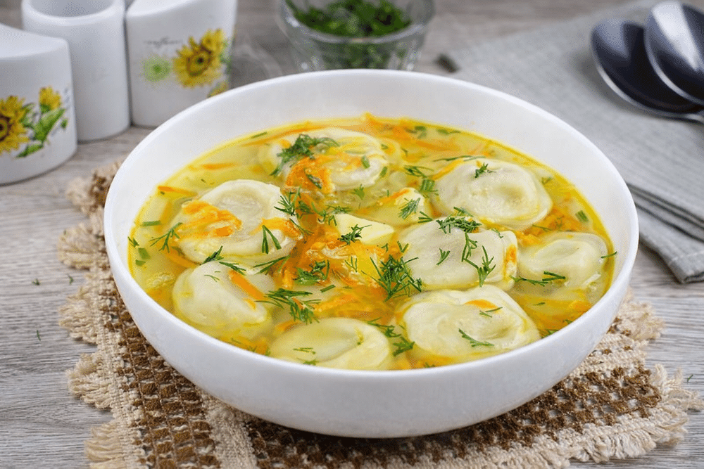 Домашние пельмени, картофель, зажарка, зелень, майонез, томат. паста